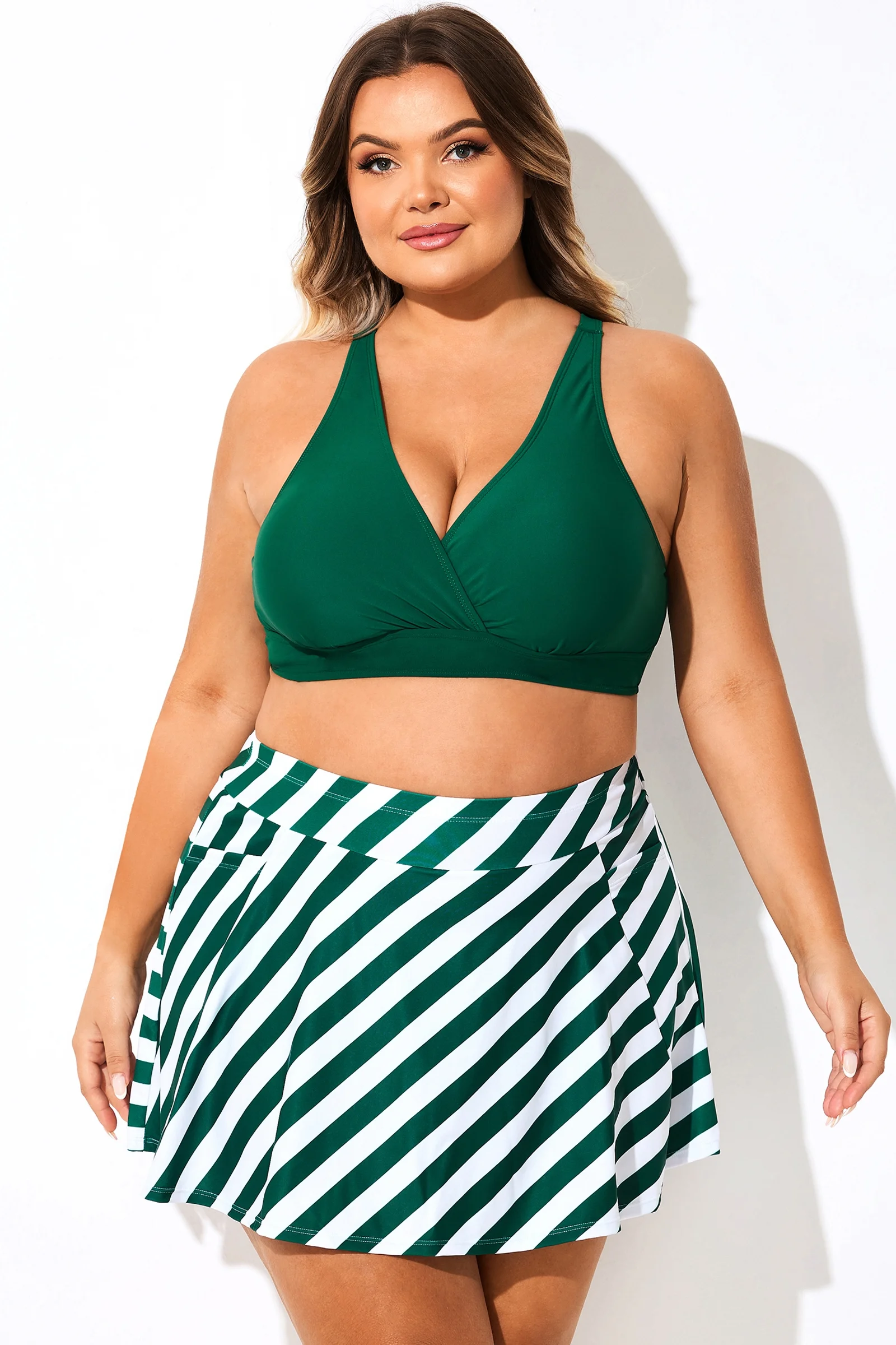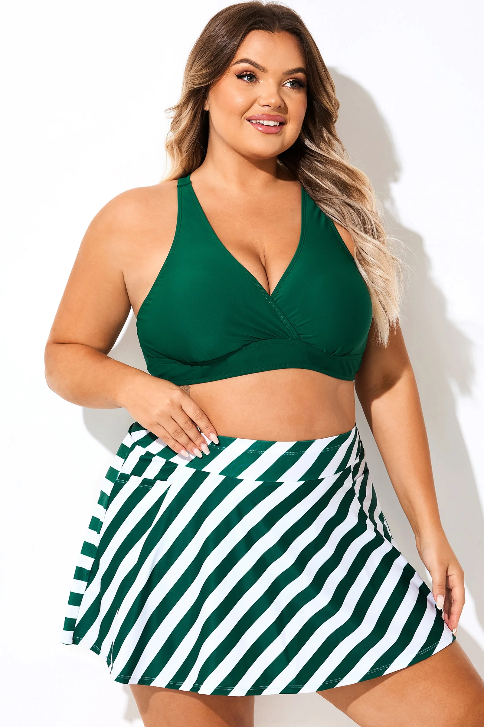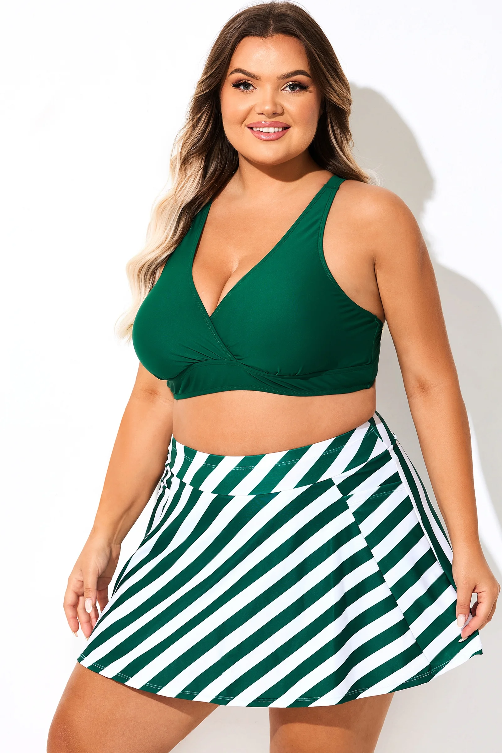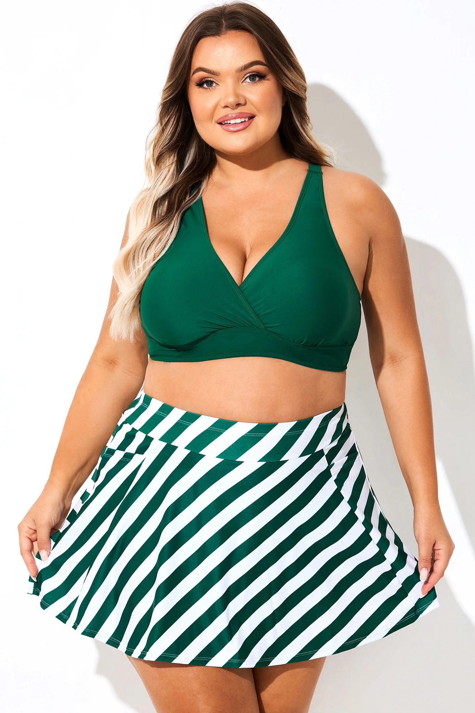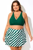 Solid Green V-Neck Crossback Bikini Top - PremCurve
