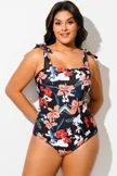 Square Neck Floral Binding Knotted One Piece Swimsuit- PremCurve