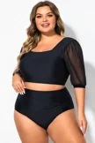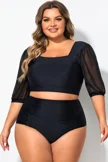 Square Neck Short Mesh Puff Sleeve Bikini Top
