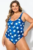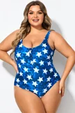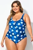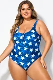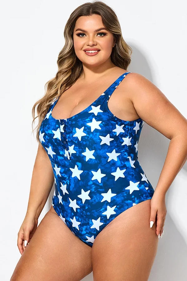 Star Print Button Front Lady One Piece Swimsuit - PremCurve