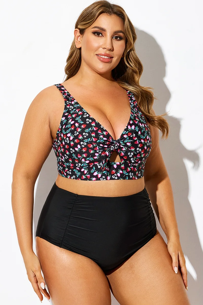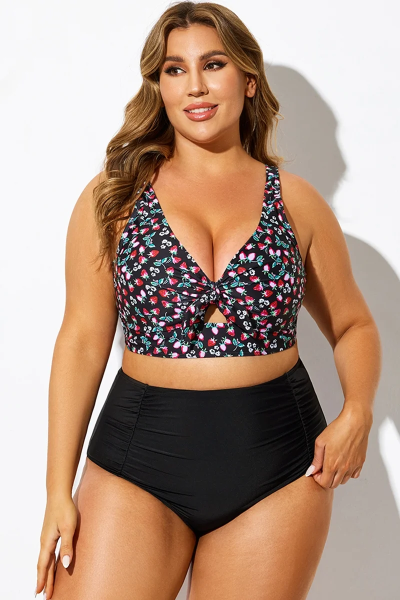 Strawberry Print V-Neck Knot Bikini Top - PremCurve