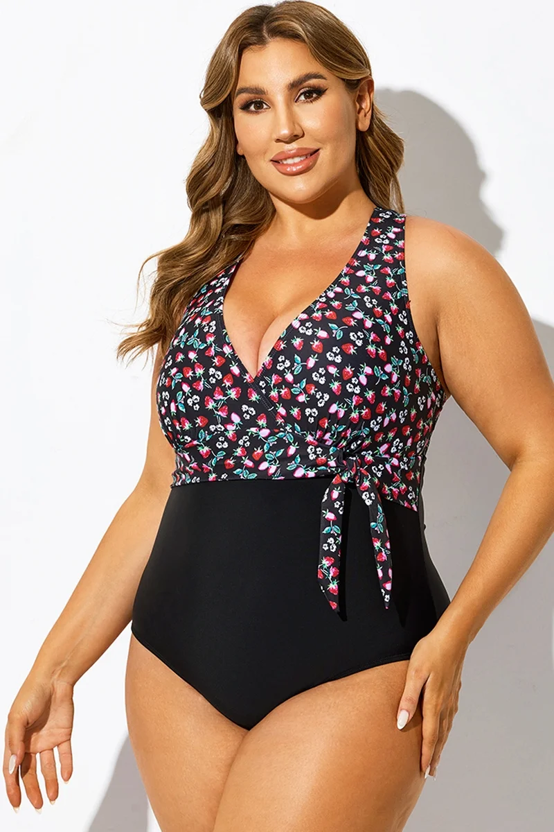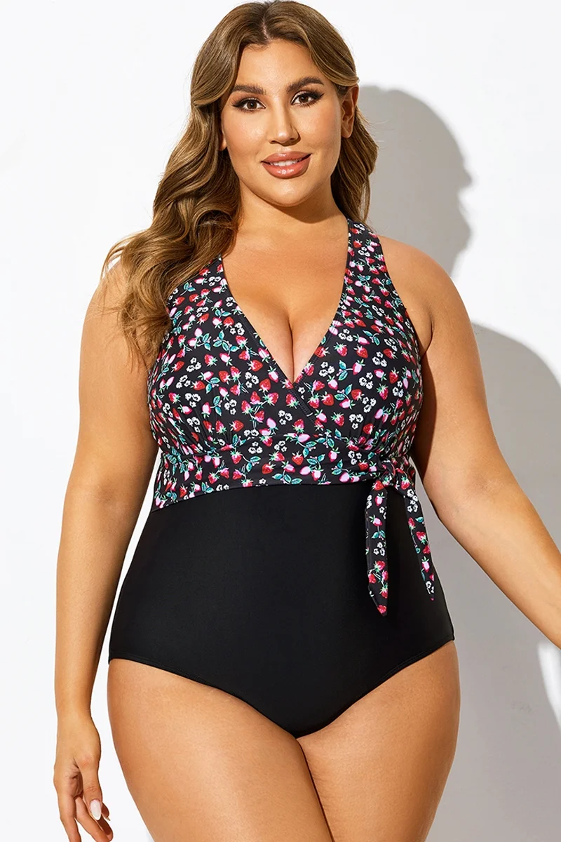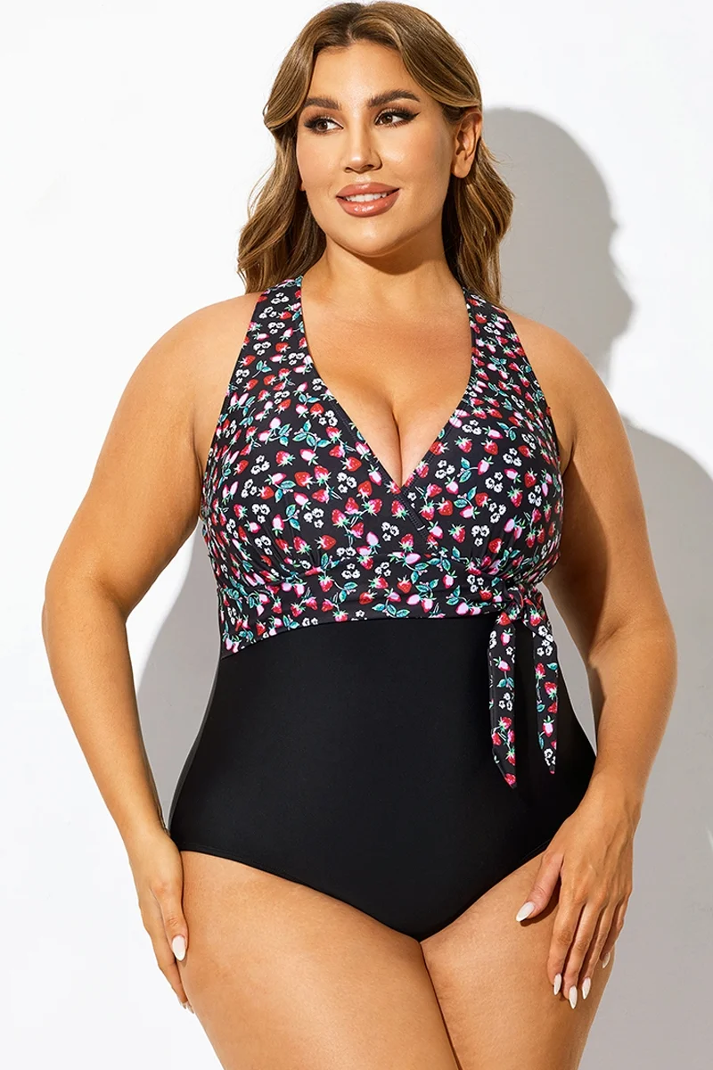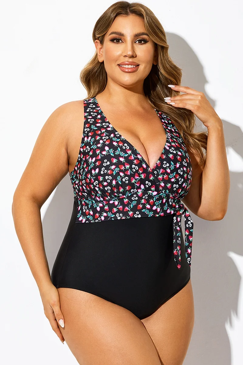 Strawberry Print V-Neck One Piece Swimsuit - PremCurve