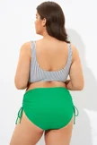 Blue Shirred High Waist Swim Brief For Lady