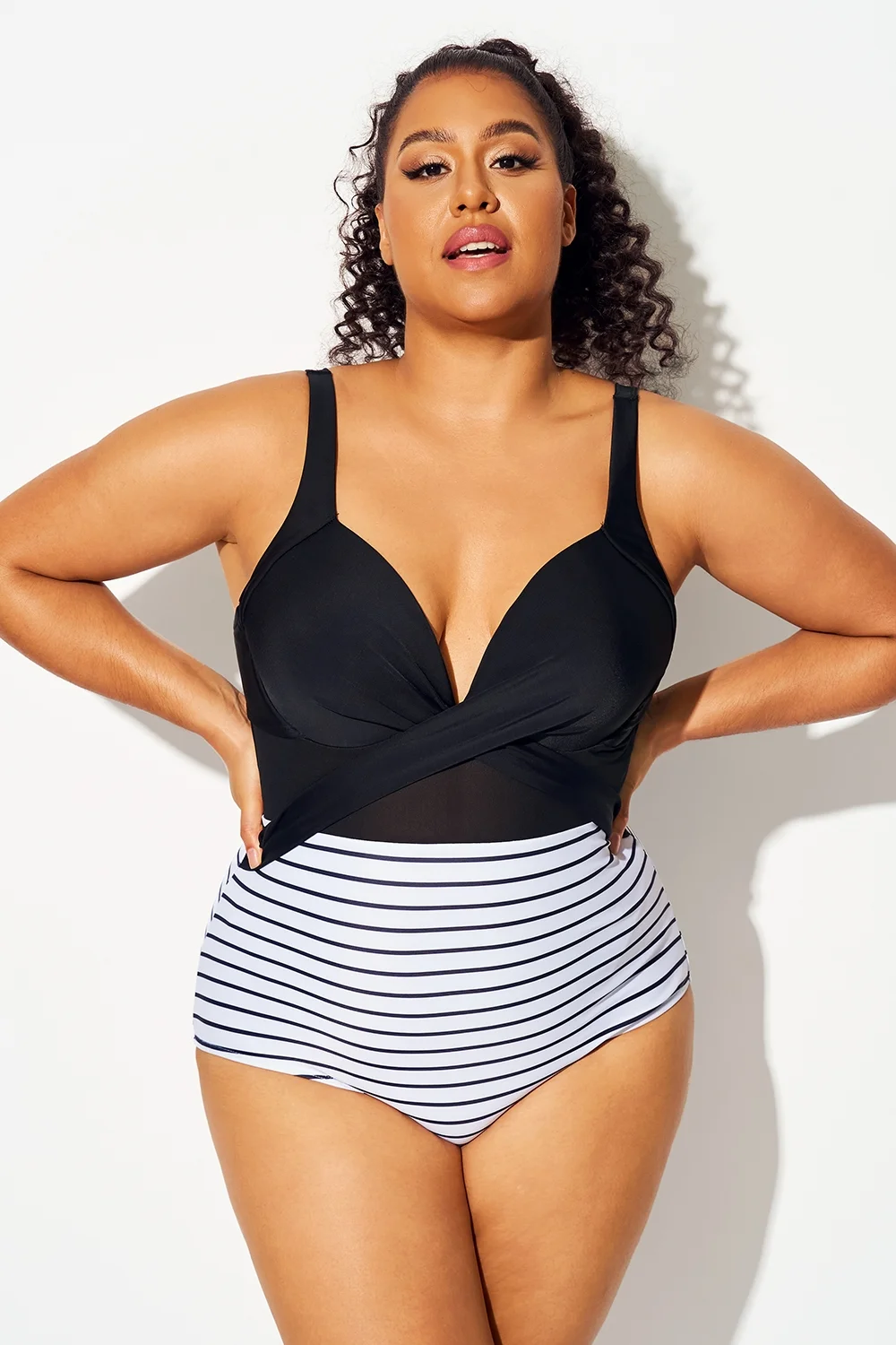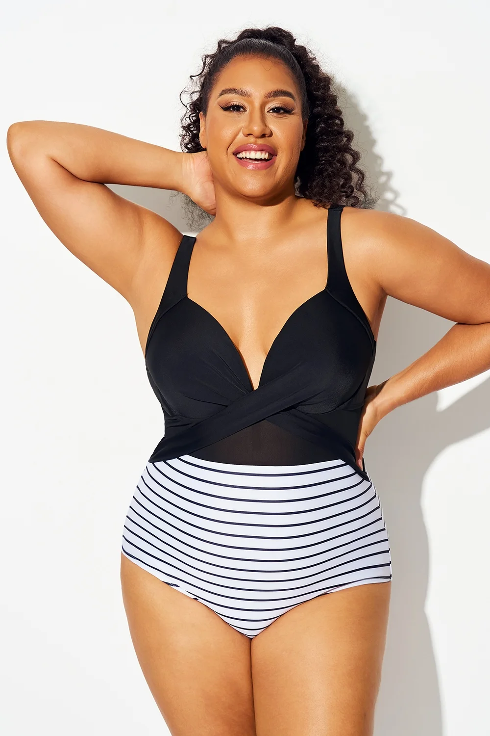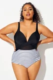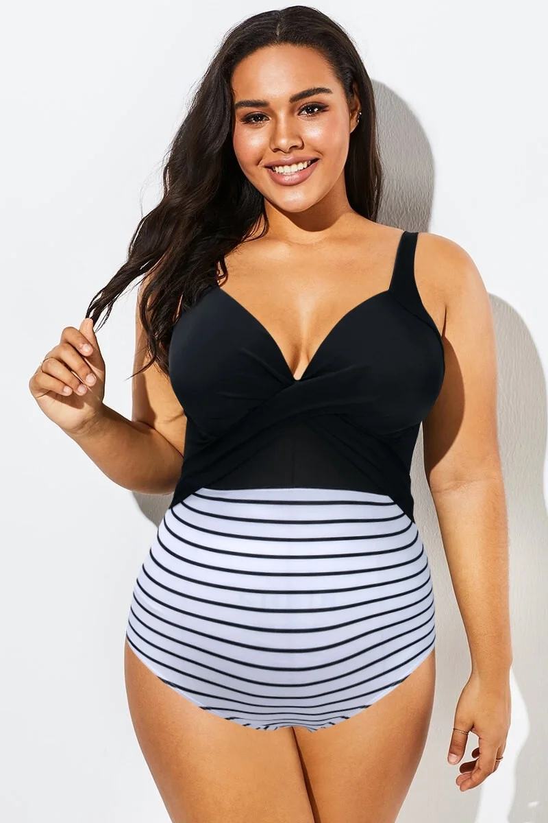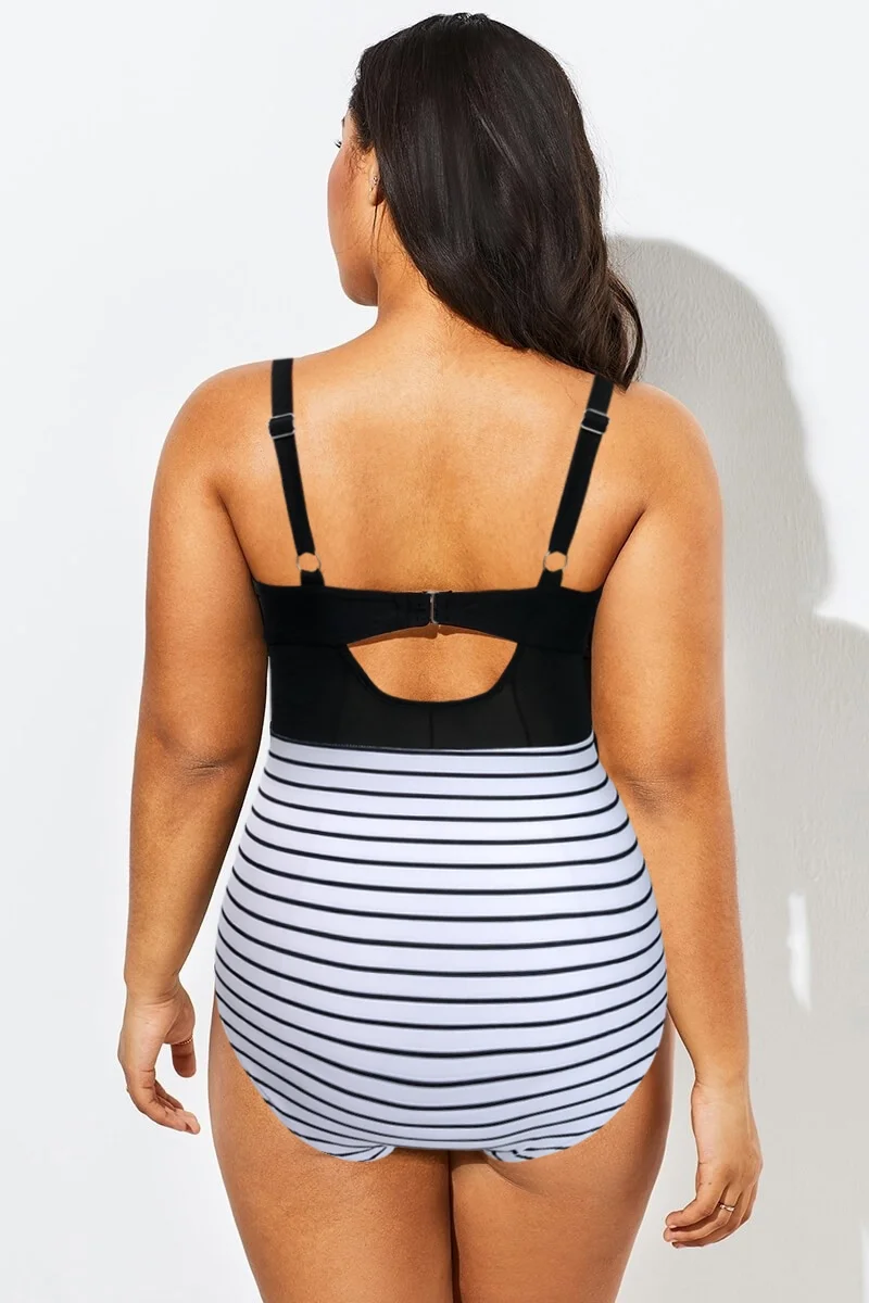 Striped Cut Out Mesh Underwire One Piece Swimsuit - PremCurve