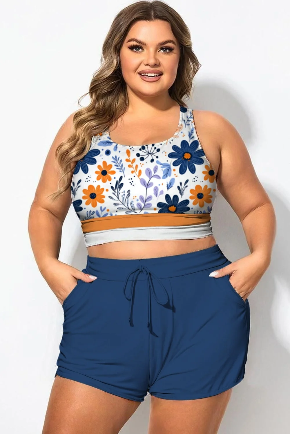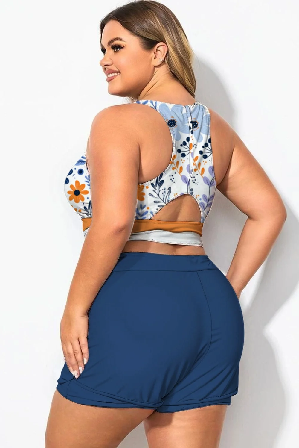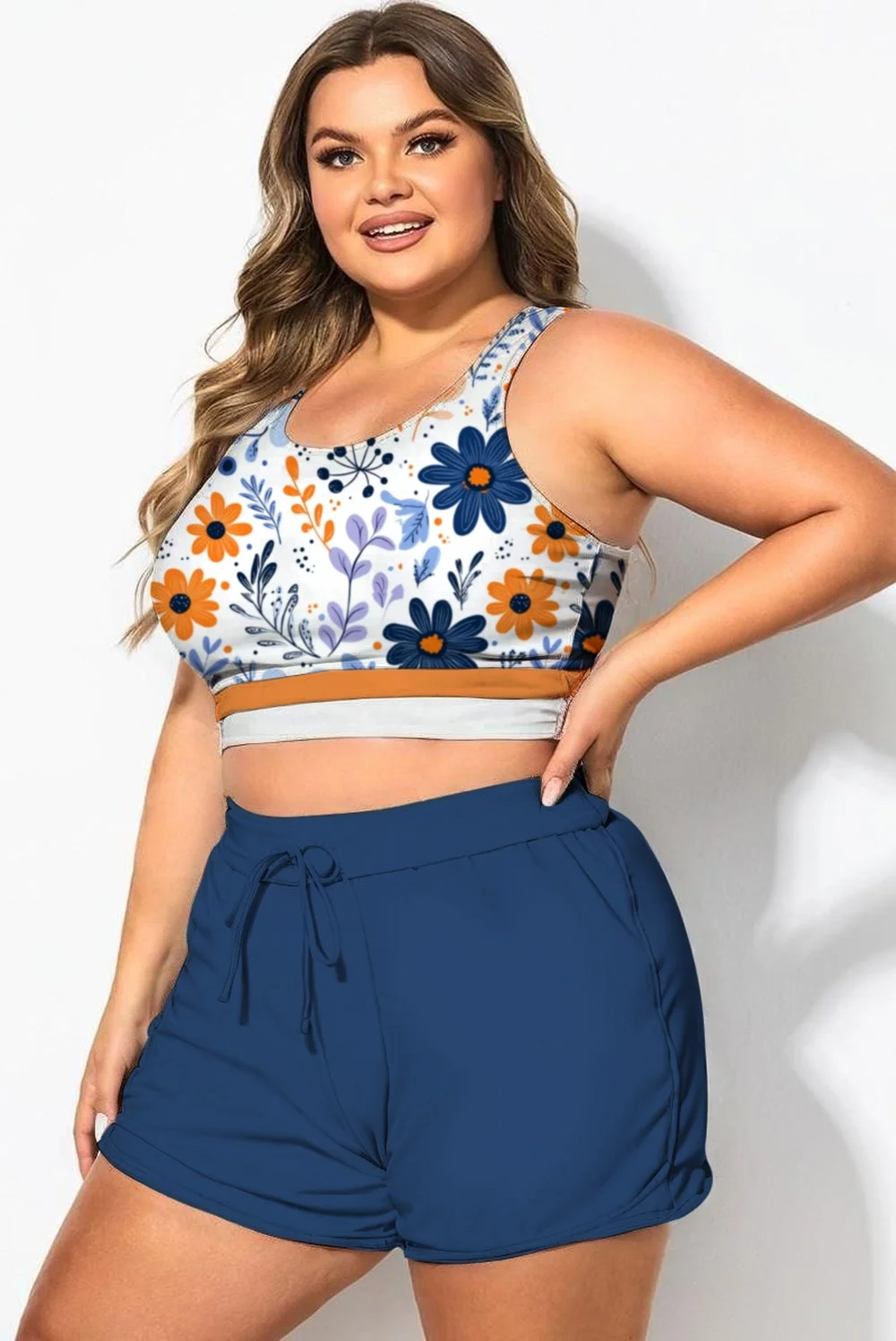 Plus Size Pink And Green Contrast Patchwork Bikini Top