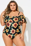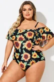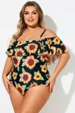 V-Neck Green Squares Cut Out One Piece Swimsuit