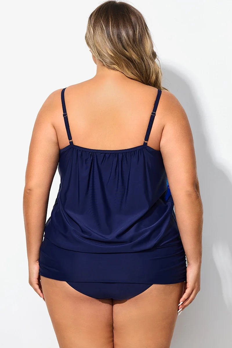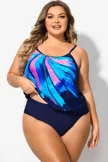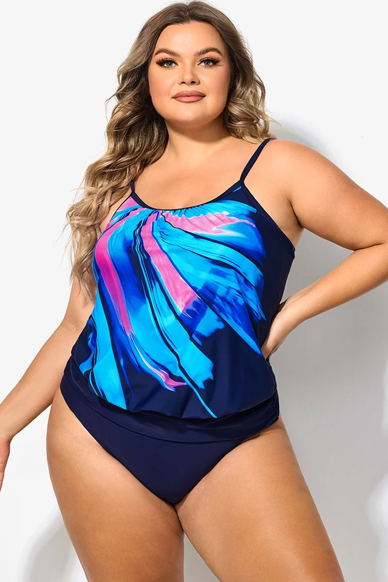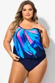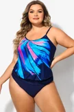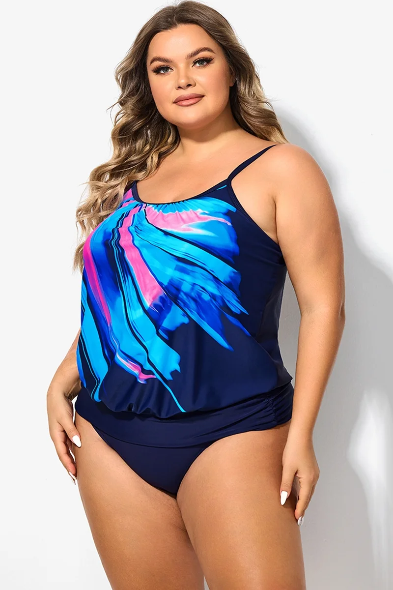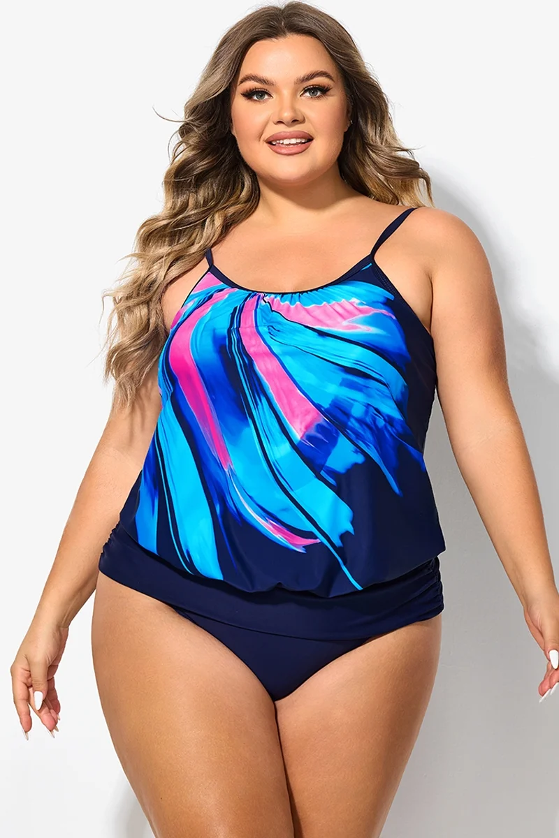 Fashionable Technicolor Draped Blouson Tankini Top - PremCurve
