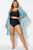 Plus Size Round Neck Black Patchwork Bikini Top