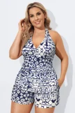 Tie-Dye Printed Self-Tie Halter Shirred Tankini Top - PremCurve