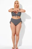 Plus Size Round Neck Black Patchwork Bikini Top
