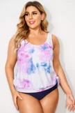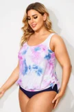 Tie Dye Square Collar Side Tie Hemline Tankini Top  - PremCurve