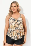 Tie Dye V-Neck Double-Tier Flowy Tankini Top - PremCurve