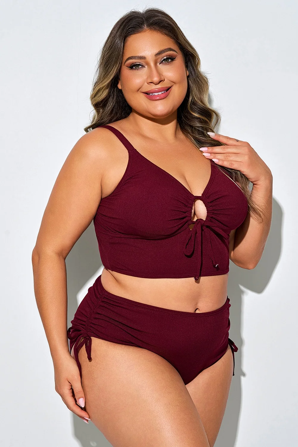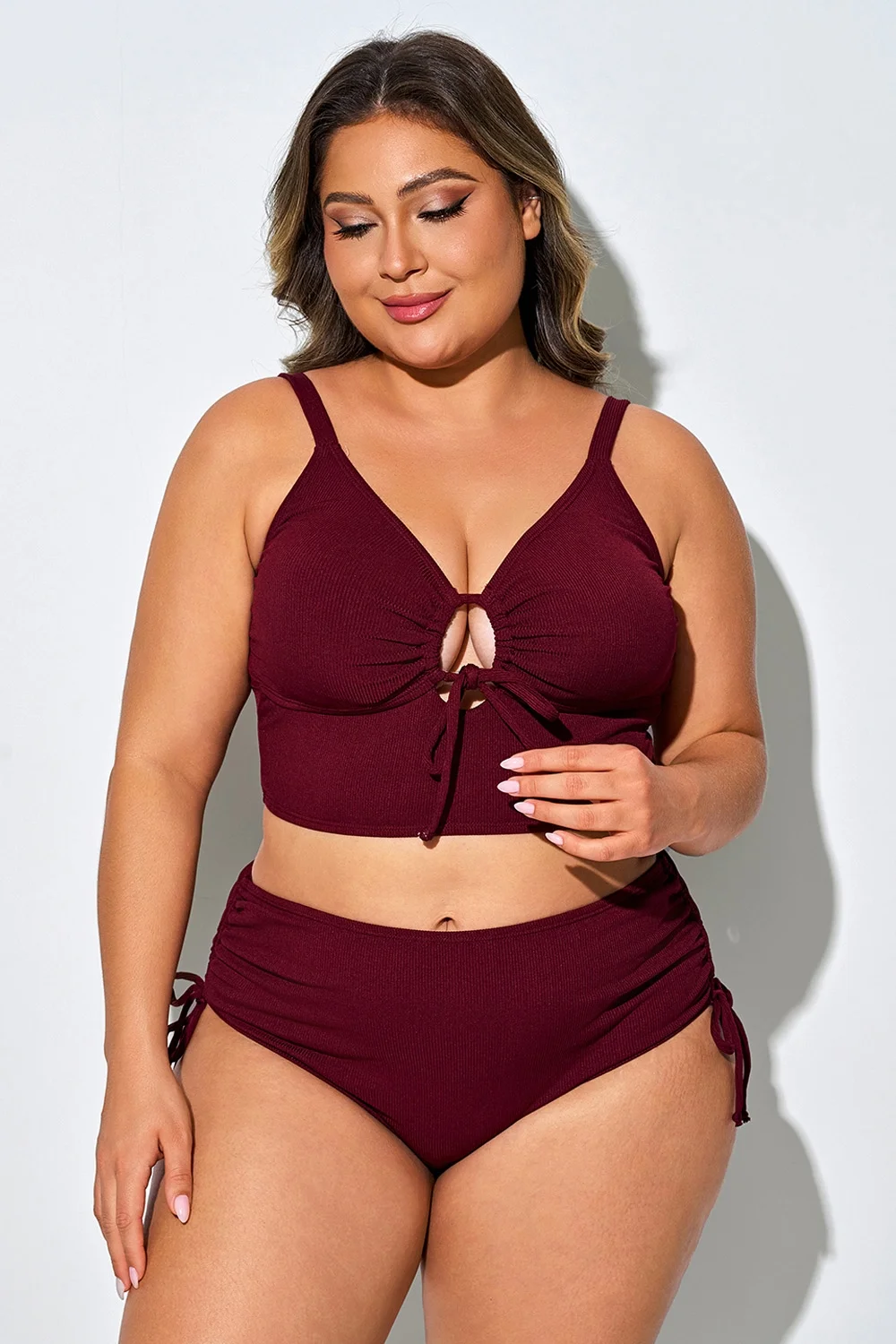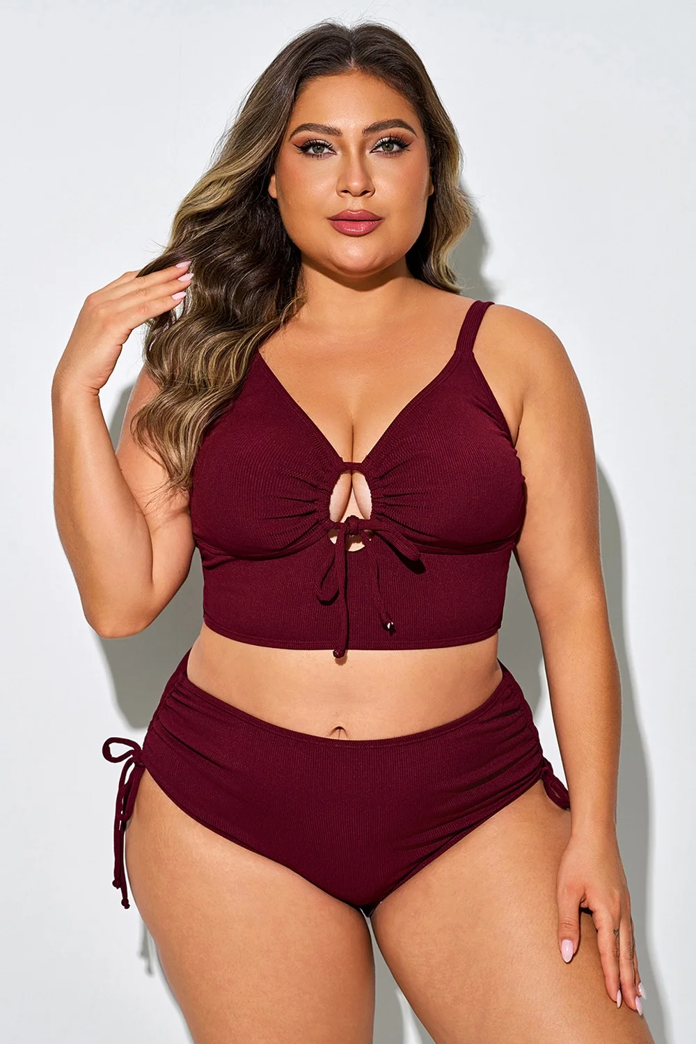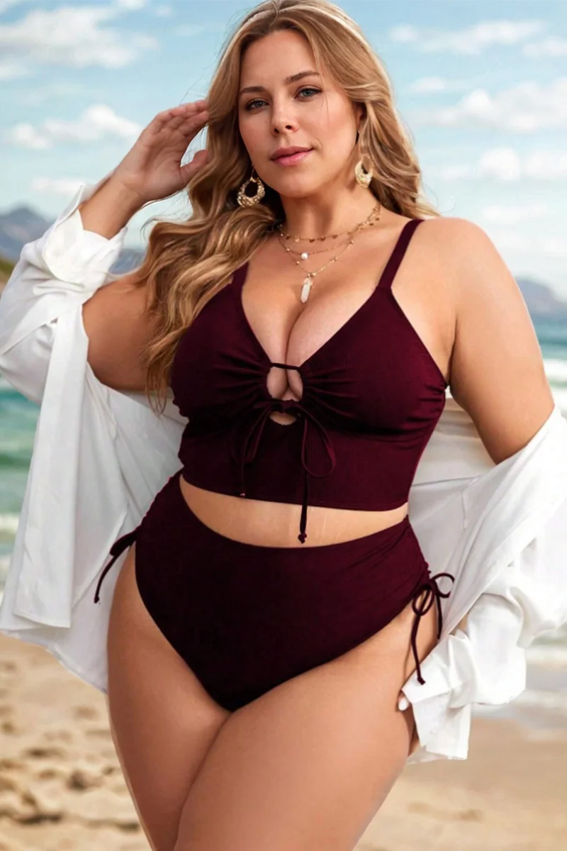 Tie Front Spaghetti Strap High Waisted Bikini Top - PremCurve