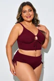 Plus Size Round Neck Black Patchwork Bikini Top