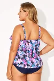 Plus Size Round Neck Black Patchwork Bikini Top