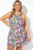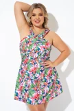 Tropic Pattern High Neck Wrap Front Swimdress - PremCurve