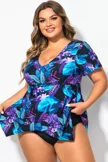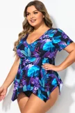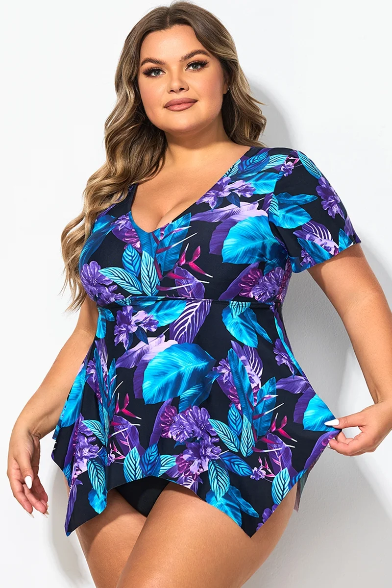 Tropical Floral Print Flutter Sleeve Tankini Top - PremCurve