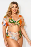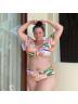 Plus Size Round Neck Black Patchwork Bikini Top