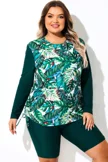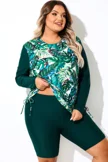 Tropical Print Side Tie Adjustable Long Sleeve Tankini Top - PremCurve