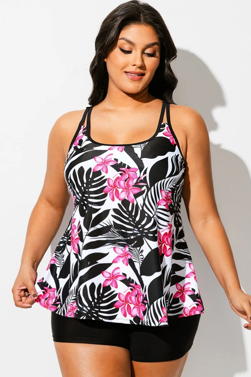 Tropical Print Square Neck Adjustable Strap Tankini Top - PremCurve
