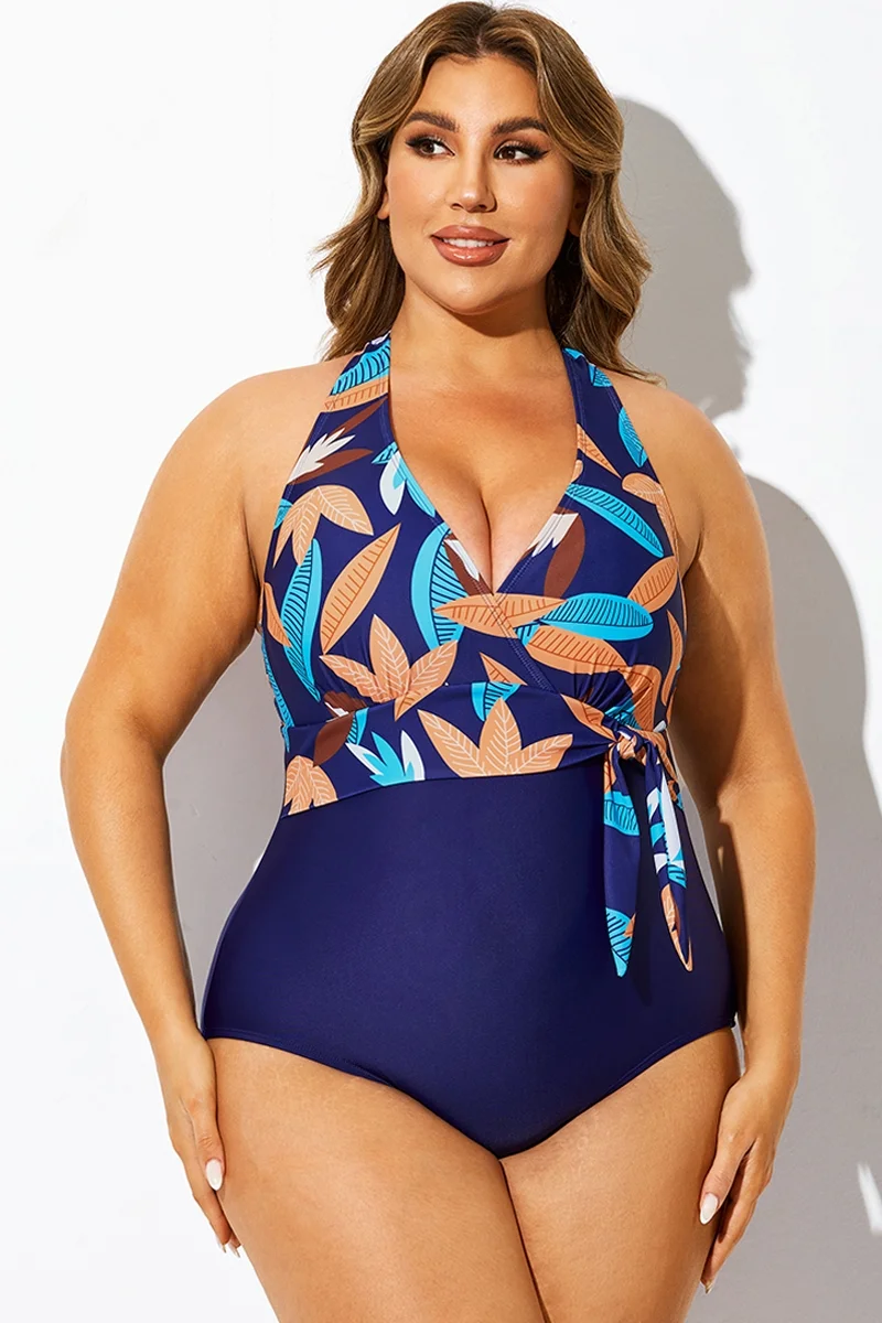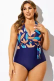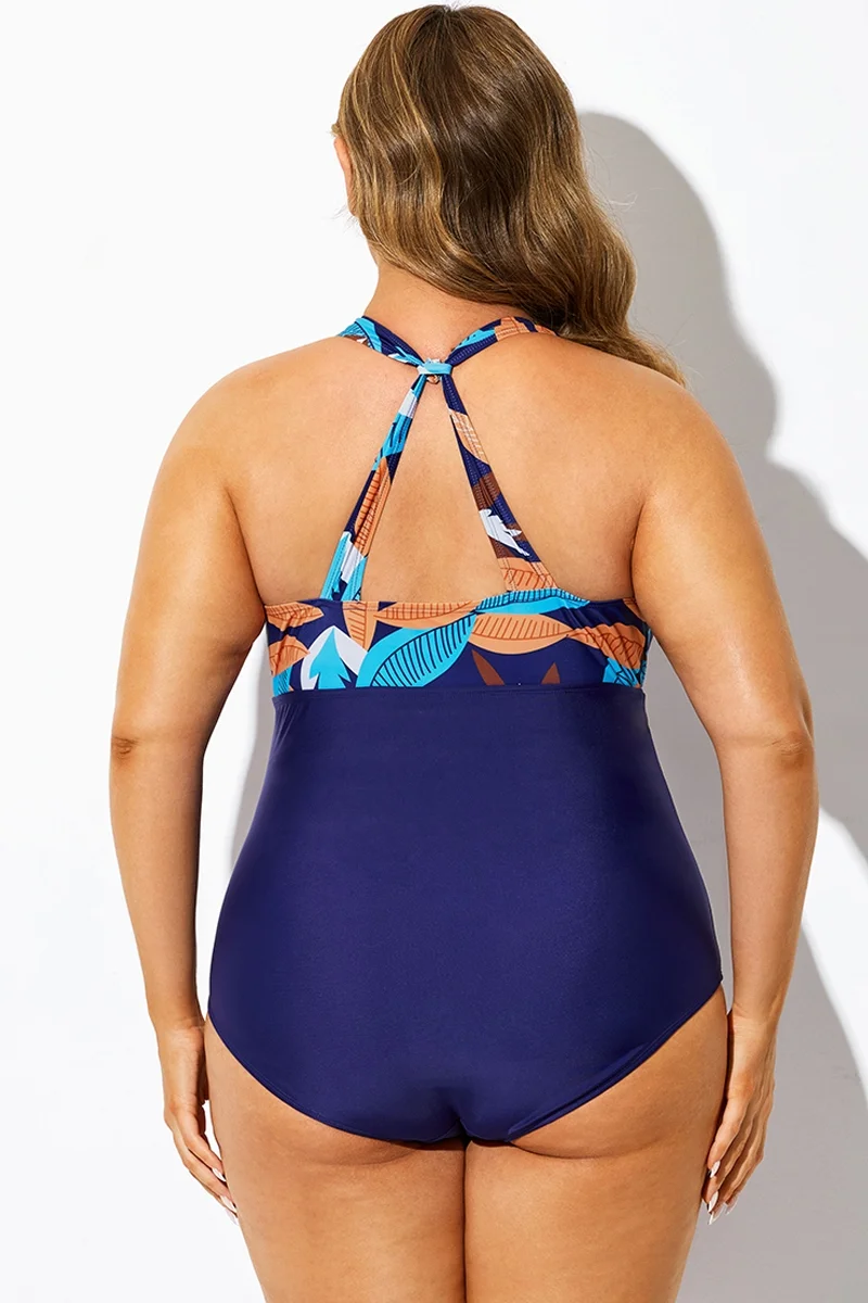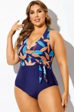 Tropical Print V-Neck Crossback One Piece Swimsuit - PremCurve