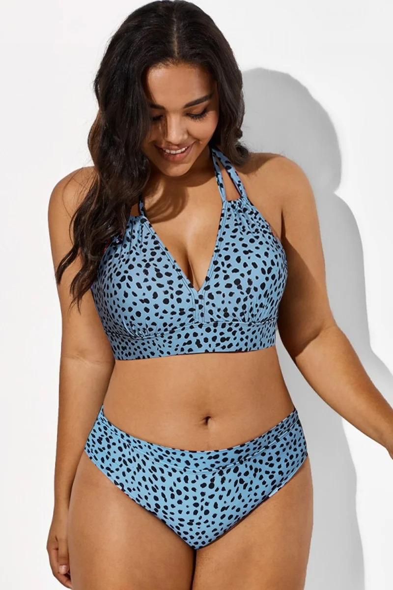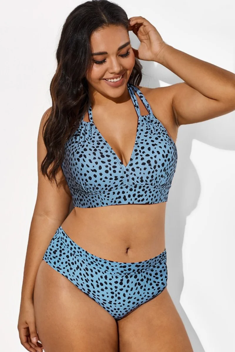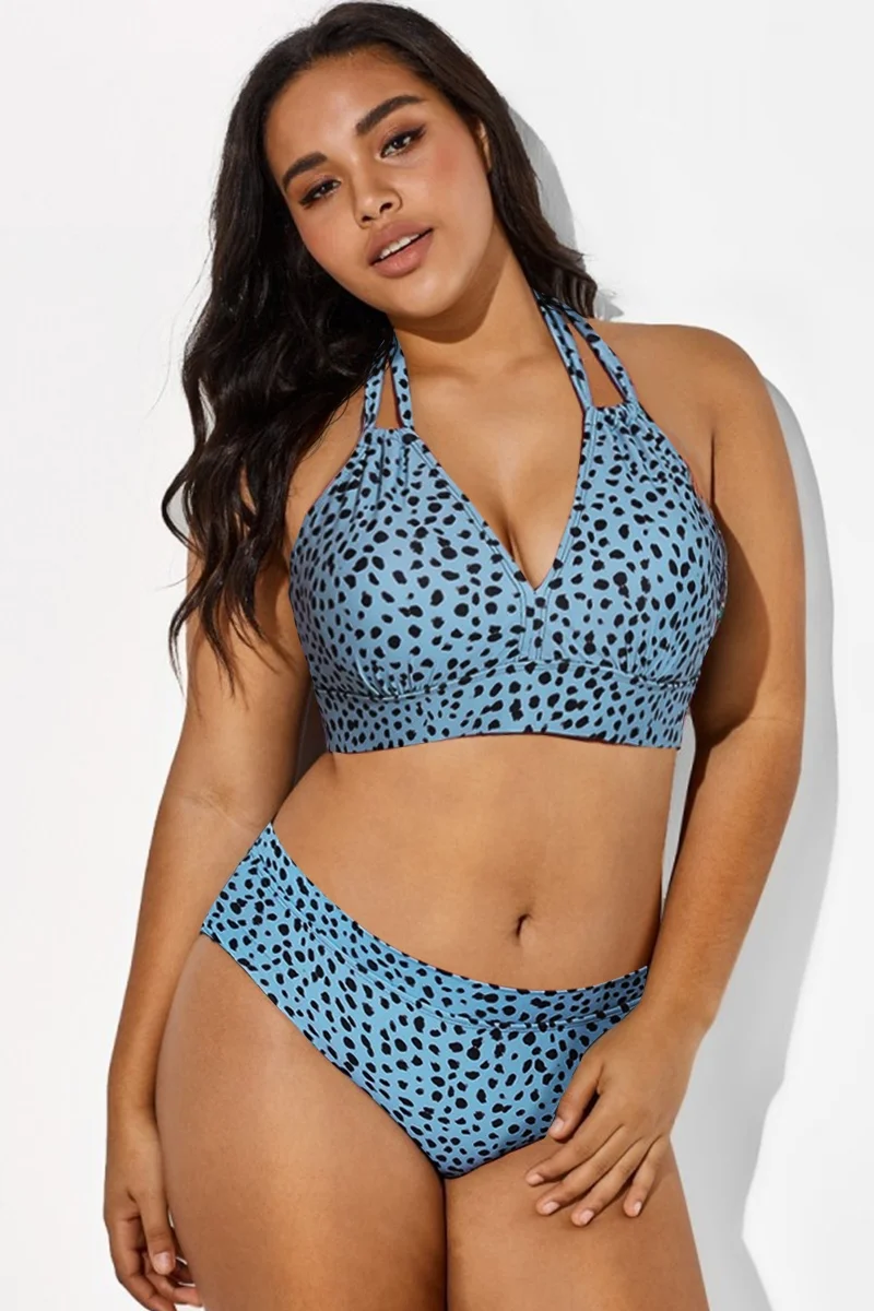V-Neck Black Dots Printed Halter Sexy Bikini Top - PremCurve