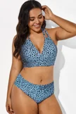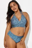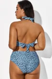 V-Neck Black Dots Printed Halter Sexy Bikini Top