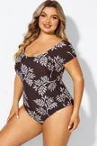 V-Neck Leaf Print Ruffles sleeves One Piece Swimsuit - PremCurve