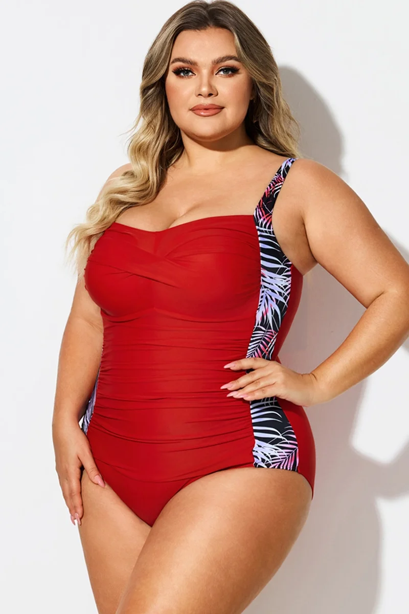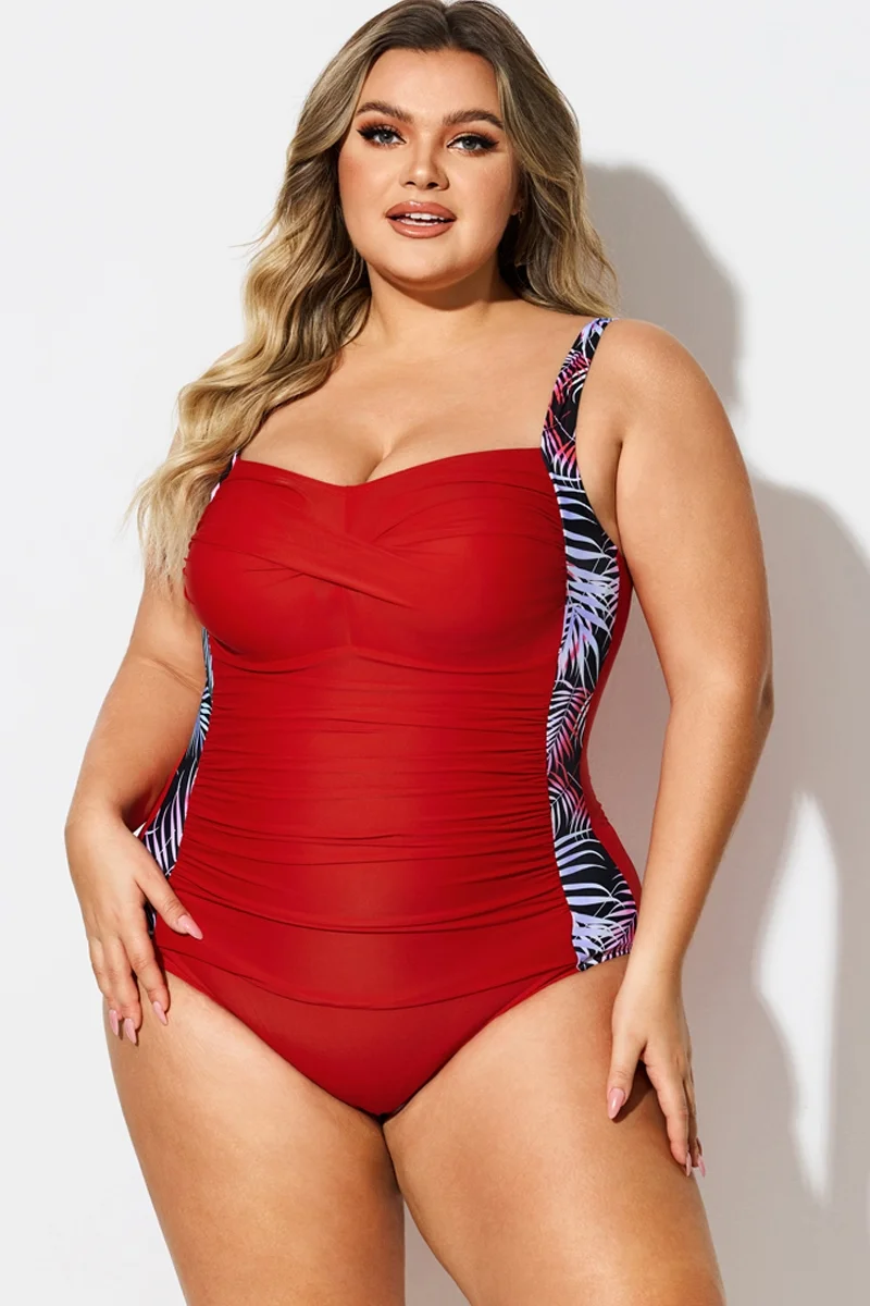 V-Neck Leaf Print Tummy Control One Piece Swimsuit - PremCurve