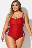 V-Neck Leaf Print Tummy Control One Piece Swimsuit