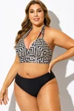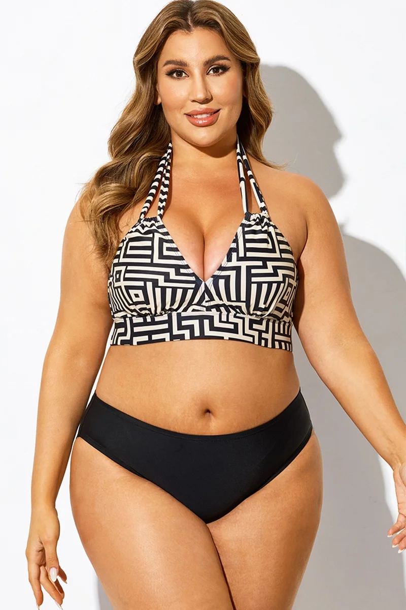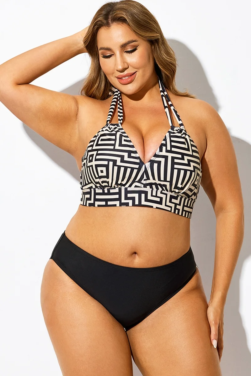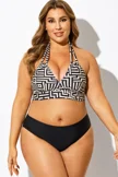 V-Neck Random Print Halter Sexy Bikini Top  - PremCurve