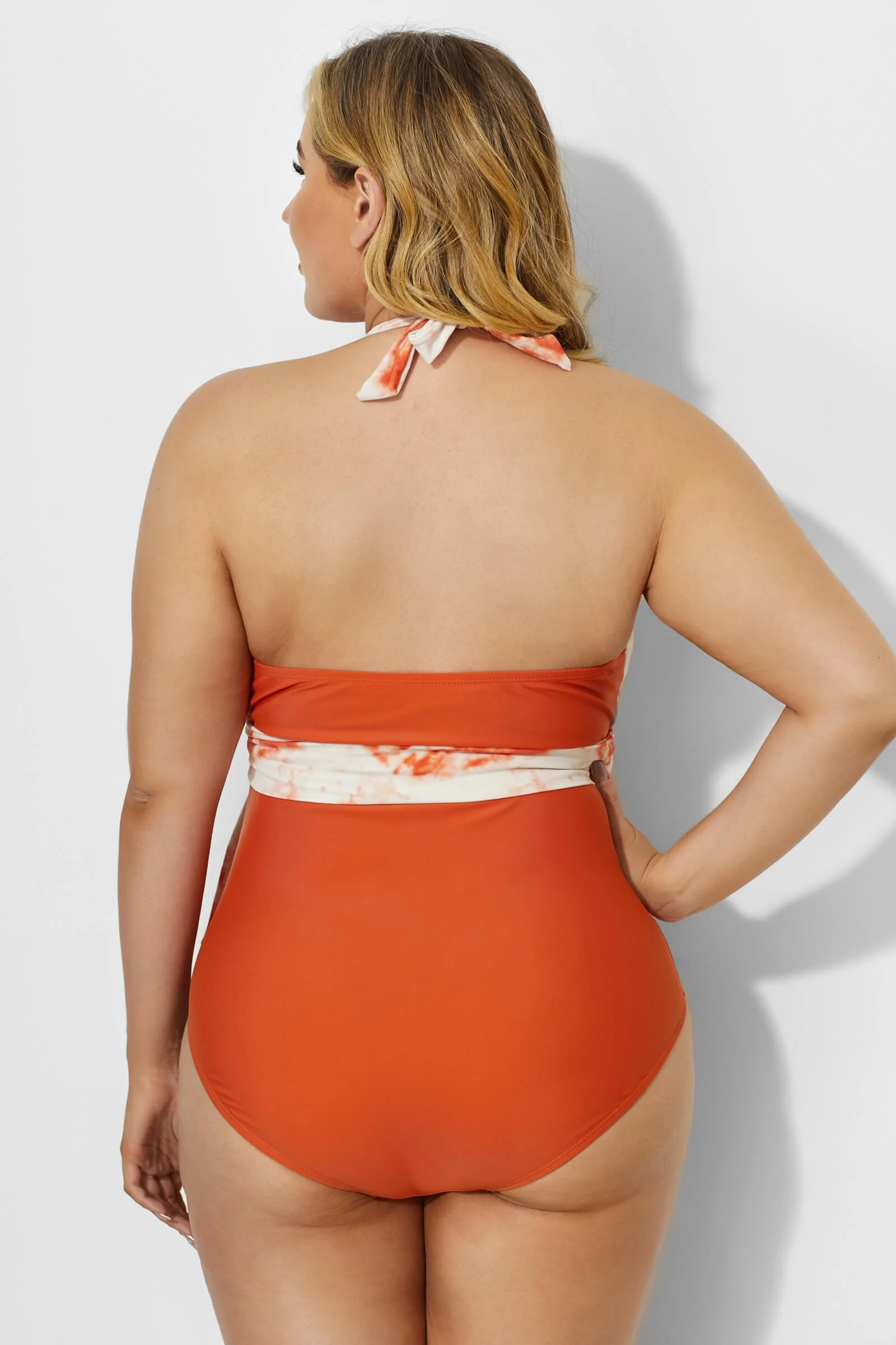 V-neck Tie dye Wrap Halter One Piece Swimsuit - PremCurve