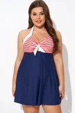 Vintage Stripe Halter Straps Women Swimdress