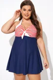 Vintage Stripe Halter Straps Women Swimdress - PremCurve