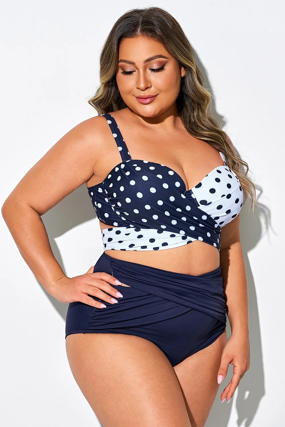 White & Blue Polka Dots Elegant Women Bikini Top - PremCurve