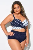 White & Blue Polka Dots Elegant Women Bikini Top