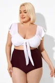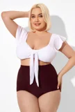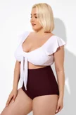 White Cap Sleeve Tie-front Bikini Top - PremCurve
