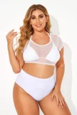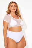 White Self-tie Halter Straps Mesh Crop Bikini Top