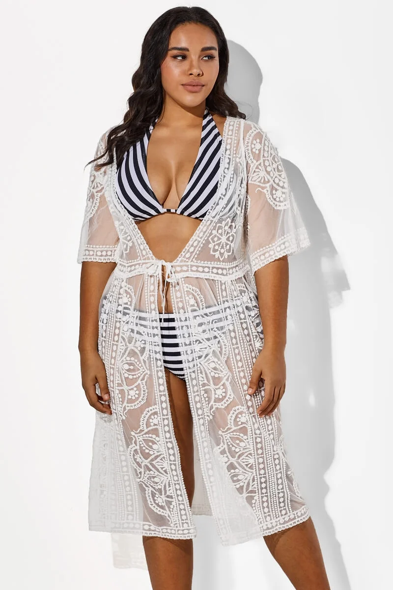 Super cute and flowy. Provides enough coverage to feel confident but still look and feel beachy. Super cute and flowy. Provides enough coverage to feel confident but still look and feel beachy. Looks exactly as pictured. Fits amazing. Thin.