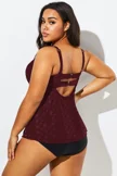 Wine Flyaway Flowy Twist Front Tankini Top - PremCurve