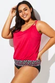 Women Red Loop Strap Blouson Tankini Top - PremCurve