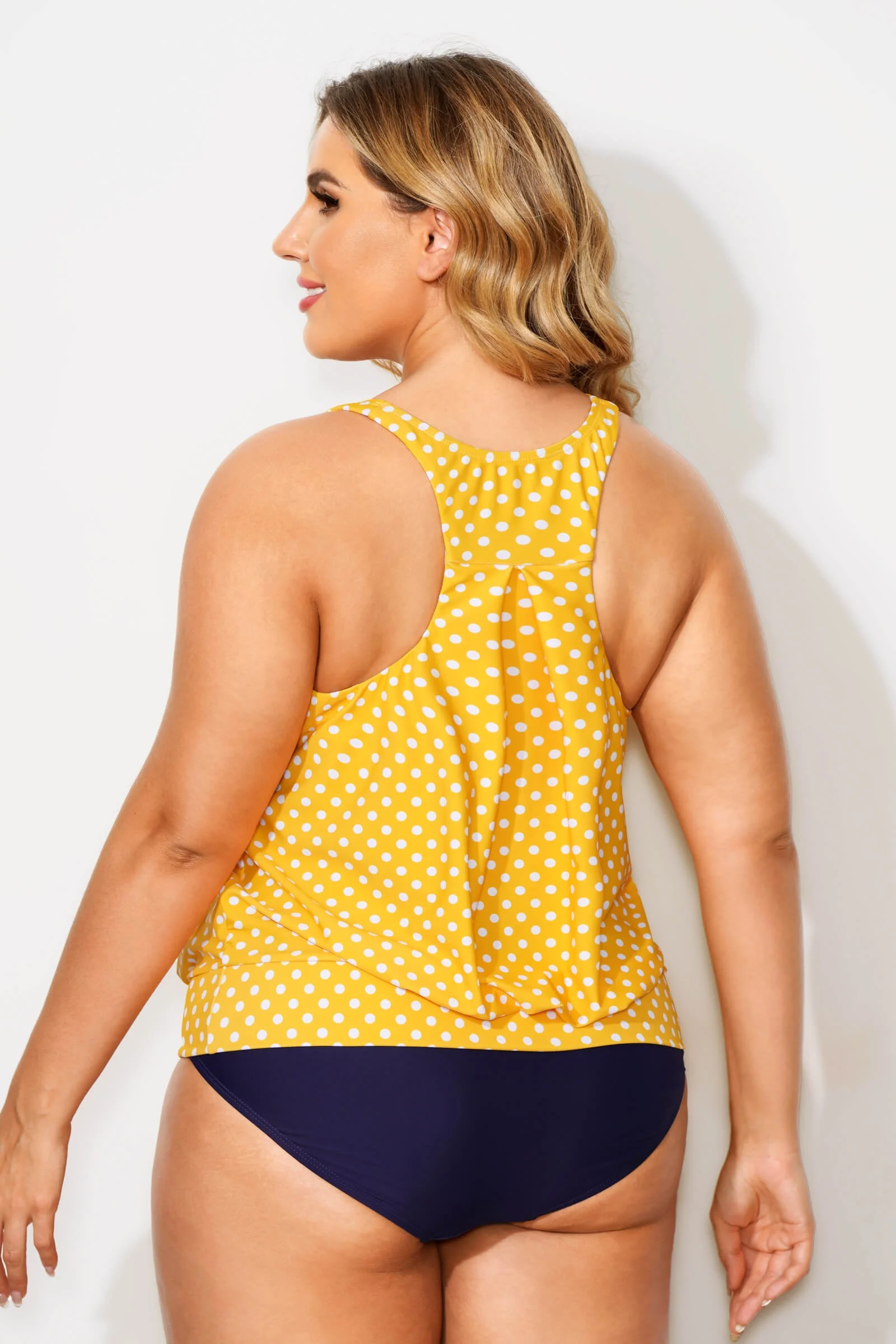 Yellow Dots Racerback Tummy Control Tankini Top