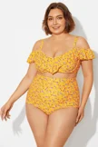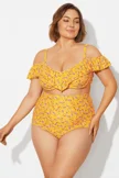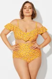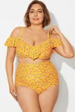 Yellow Floral Ruffled Underwire Women Bikini Top - PremCurve